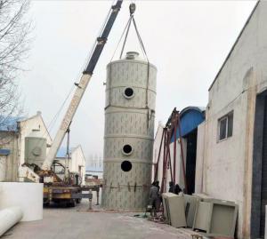 湖北客戶(hù)成品現(xiàn)場(chǎng),酸霧廢氣由風(fēng)管引入凈化塔,經(jīng)過(guò)填料層,廢氣與氫氧化鈉吸收液進(jìn)行...